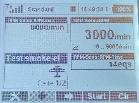 Bei der im Sensor eingestellten 1:1-Drehzahl (100 %-Drehzahl) läuft der Timer in Echtzeit. Bei weniger Gas läuft er langsamer – bei höherer Drehzahl (typisch im Flug) entsprechend schneller. So kann im Sender z. B. ein Alarm auf die sichere Vollgas-Laufzeit pro Tank (mit Reserve) gesetzt werden; sobald die RPM-Time erreicht ist, wird die Landung eingeleitet.